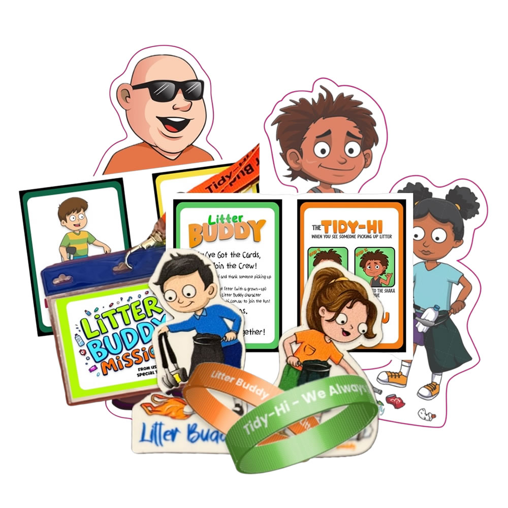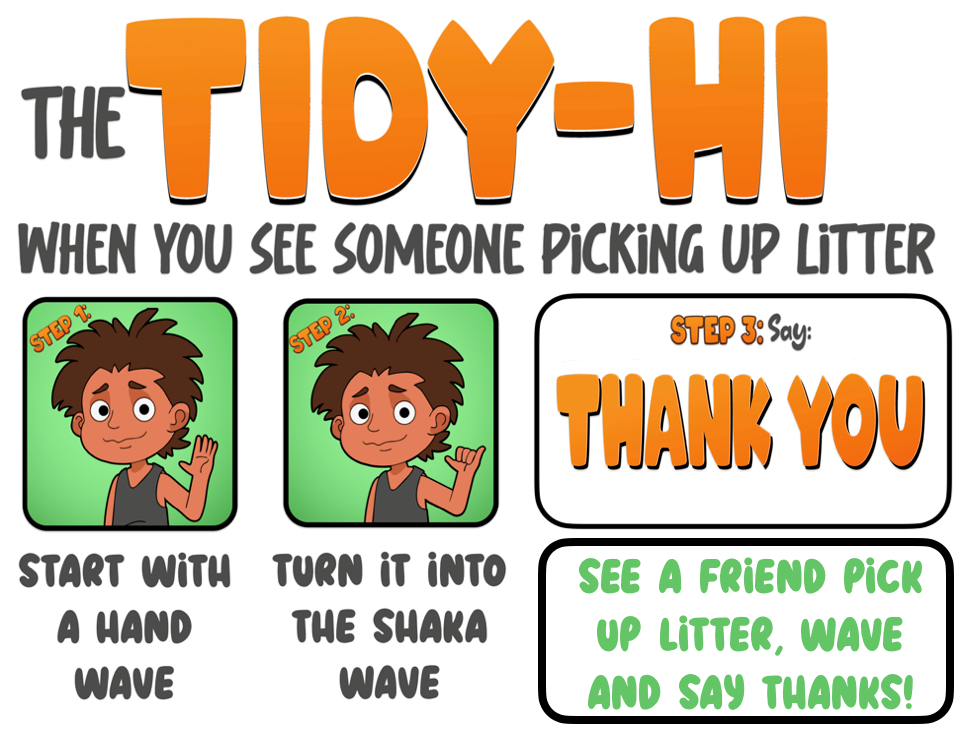 The Tidy-Hi wants to spread a spirit of thankfulness and care for each other and our surroundings. With a simple wave, called The Tidy-Hi, we can acknowledge those who care for where we live, work and play.