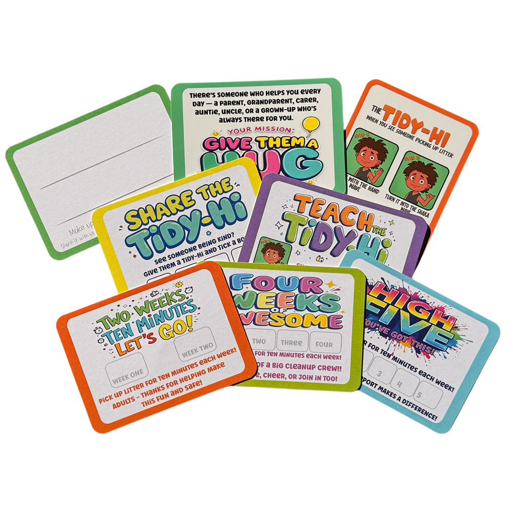 Some cards invite you to step outside and help — with kindness challenges and clean-up missions you can wear in your lanyard and carry to the park, the playground, or your next family walk. Every pack offers something new – a challenge to complete, a character to meet, or a story to begin.