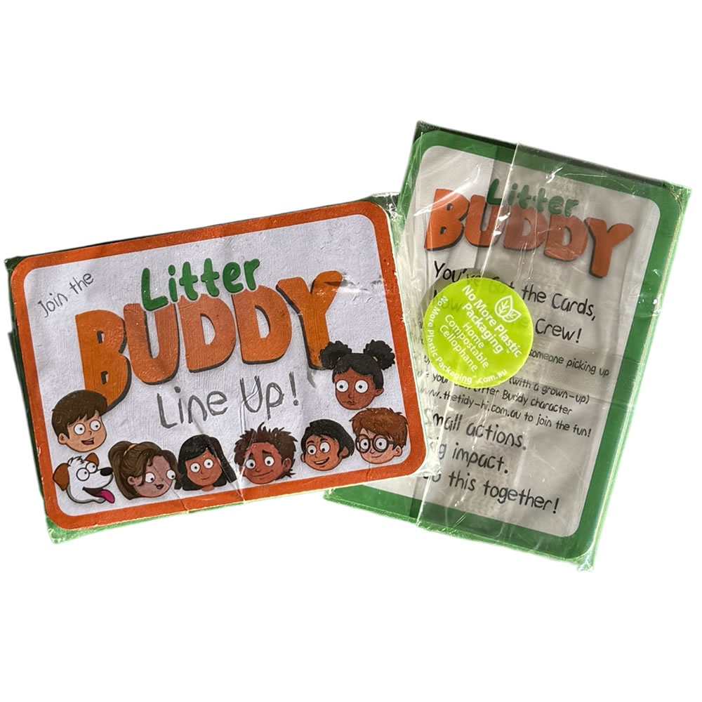Inside each Litter Buddy Line-Up pack you’ll find 7 cards — a mix of colourful characters, real-world missions, and fun surprises.